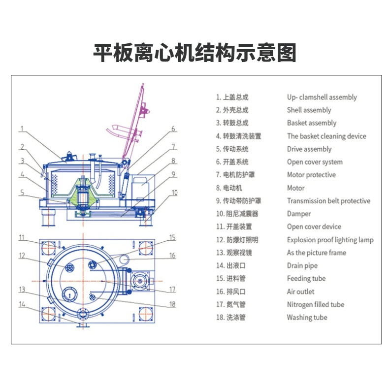 平板刮刀分離機的作用原理?主要是基于離心力的作用。當電機驅動旋轉盤高速旋轉時,會產生強大的離心力場,使固體顆粒被吸附在盤壁上。同時,液體通過溢流口流出,實現固液分離。分離結束后,卸料門打開,刮刀裝置將固體顆粒刮下并收集到集料槽中?。